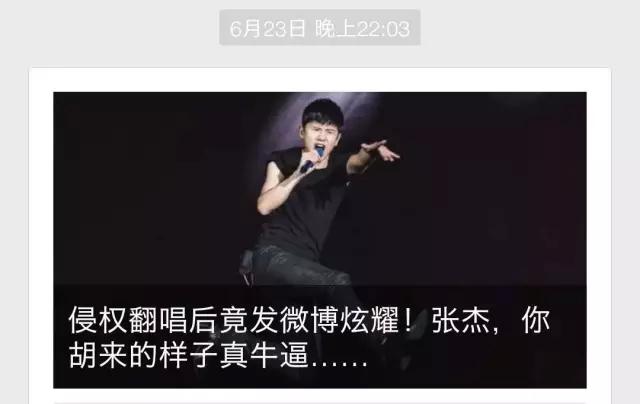 侵权翻唱还发微博炫耀,滚君想不出比这更愚蠢且无耻的行为。于是滚君第一时间和赵照取得联系,并在当天发布了一篇文章《侵权翻唱还发微博炫耀!张杰,你胡来的样子真牛逼!》。