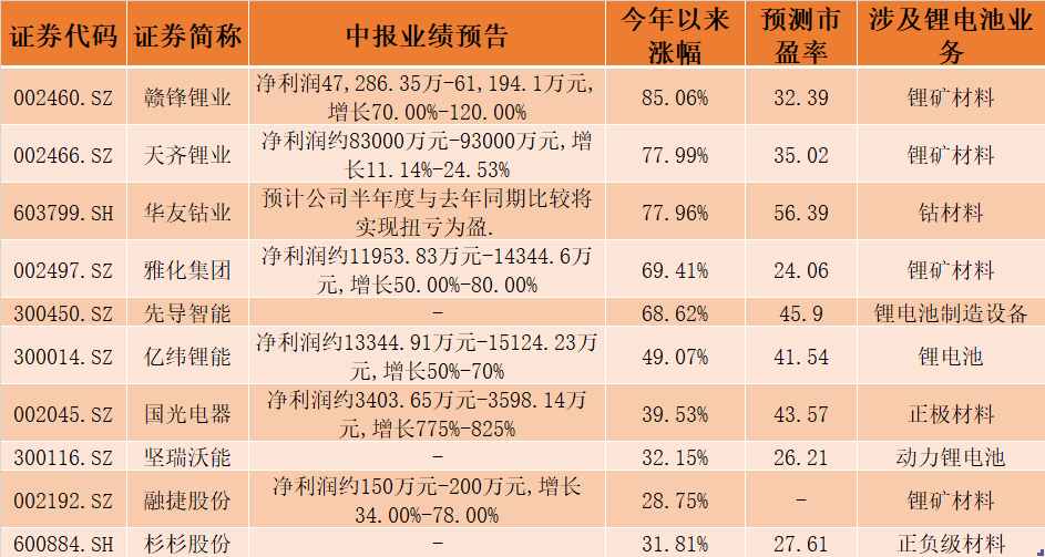 界面新闻统计目前锂电池板块公司的中报预告情况(35家已经发布中报预告)发现,19家公司明确中报净利润将实现同比正增长,占已发布中报预告公司的比例为54.29%,8家公司明确净利润将出现下滑,另外还有8家公司无法确定。