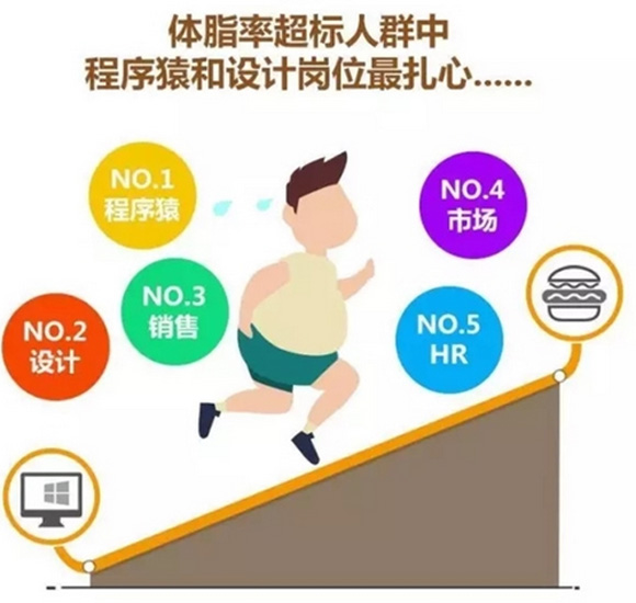 要想年龄小,避开加班和过劳肥,除了挑公司,用心选好岗位也很重要。例如程序猿和设计师这种长期坐在电脑前劳作的职业,体脂率超标就很普遍。