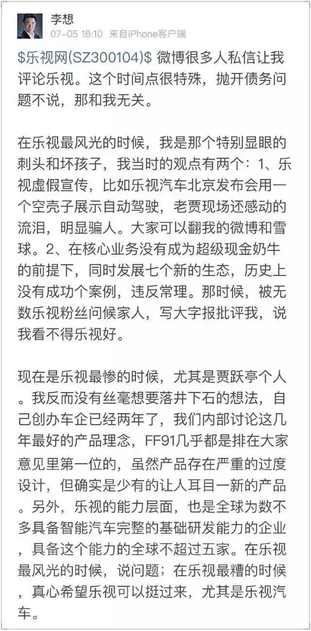 希望这种尊重事实、有理有情的氛围能更加发扬光大,长江后浪推前浪,一浪高过一浪,创业创新这么火爆的社会环境之下,想必未来会诞生更多的贾跃亭一类的冒险家。