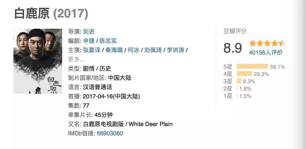小学僧今天要为大家介绍的是一部讲述我们民族文化和精神的巨作,由导演刘进执导,张嘉译、秦海璐、何冰主演,播放超70亿次,某瓣评分高达8.9的巨制《白鹿原》。