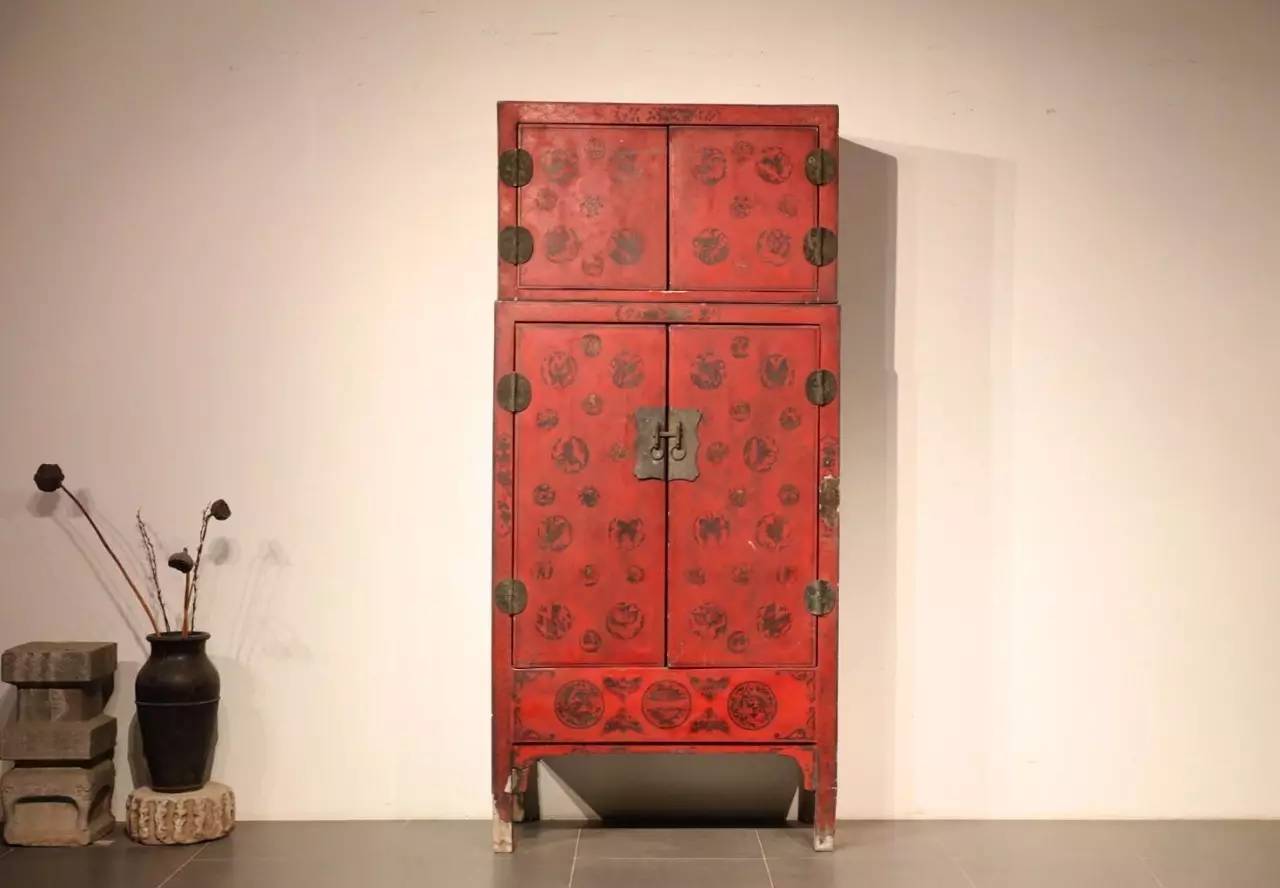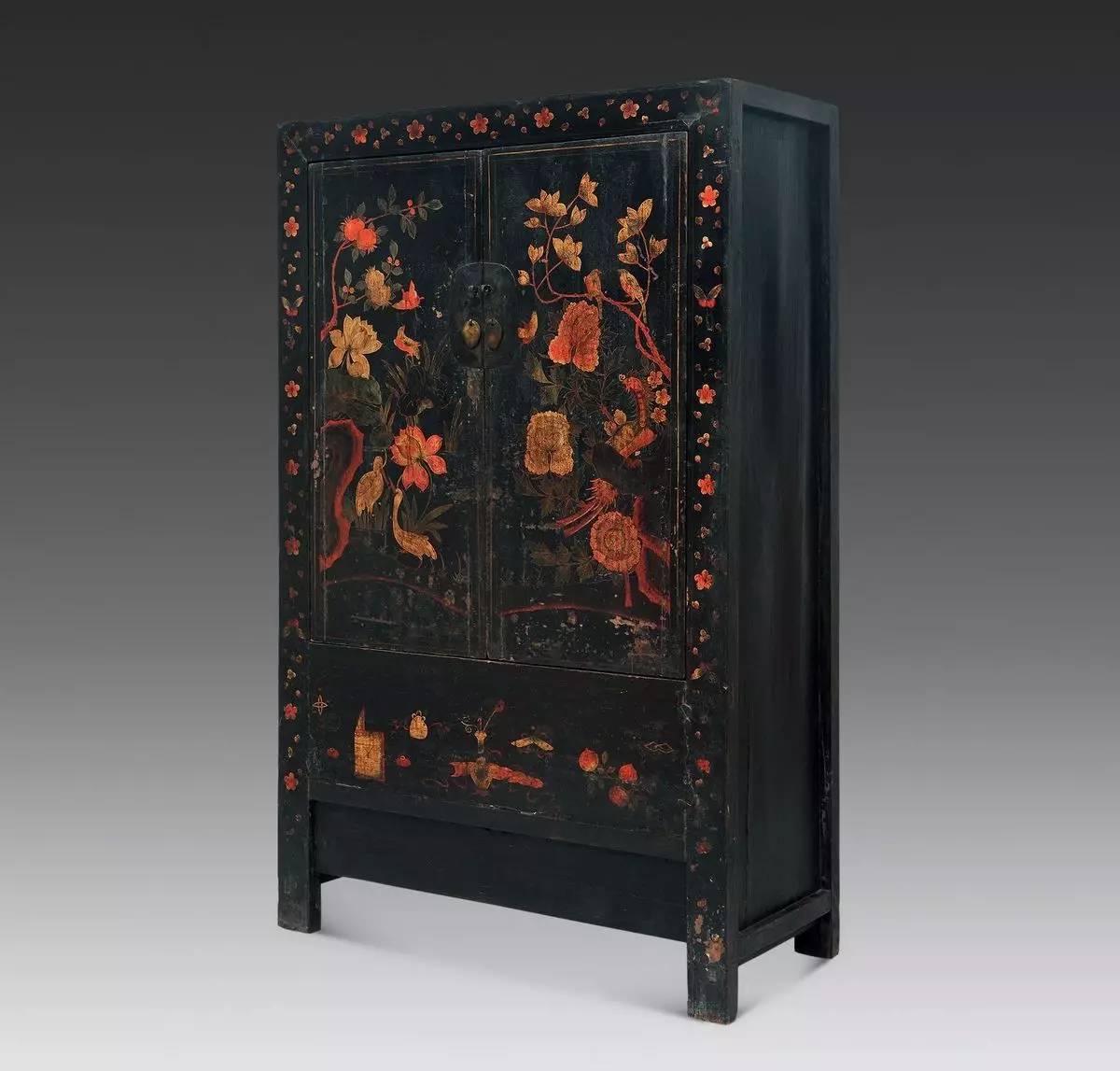 面板髹朱漆,框架髹黑漆的顶箱柜