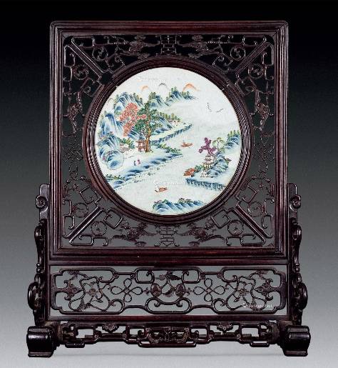 白家老爹屋内方桌上陈设有一嵌瓷板小座屏