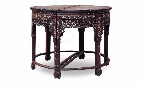 除了白家和鹿家,武举人出身的郭财东,其姨太太田小娥屋中陈设有装饰繁缛的嵌螺钿圆台。镶嵌贝壳,是清末民初有钱有势的官商地主家中,女眷居所内常见的家具风格。那个时代最喜欢嵌螺钿家具的女人,是在紫禁城中的慈禧太后。