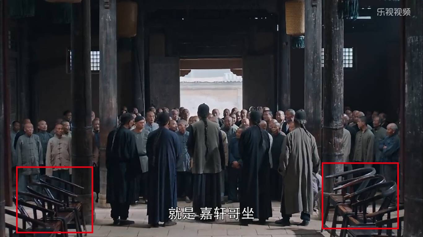 白嘉轩成为族长后第一件事,就是要翻修祠堂,敬祖、维护宗法权威的同时重新凝聚宗族人心。翻修后的祠堂与新上任的白嘉轩一样,有了新的气象。此时祠堂内的圈椅,也换成了工艺更为讲究的四出头官帽椅。用威严大器的四出头,折射出家族宗法于白嘉轩心中不可撼动的地位。
