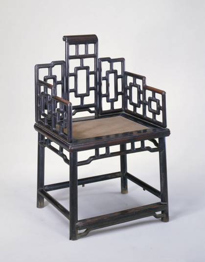 故宫藏乌木七屏卷书式灯笼锦扶手椅