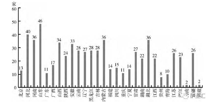 国家级绿色矿山在各省、自治区和直辖市的数量
