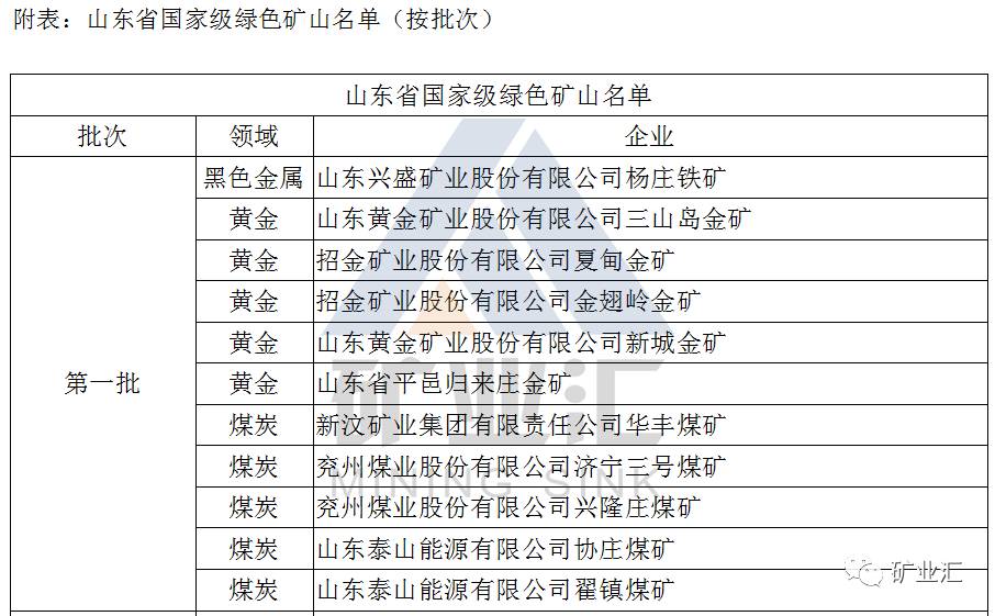 山东绿色矿山名单