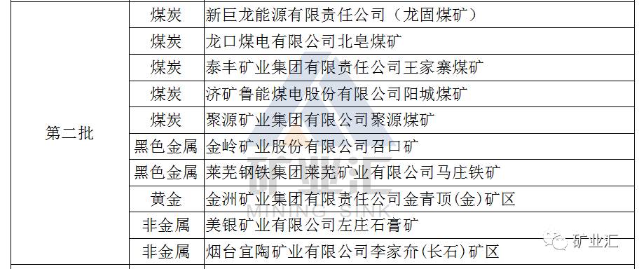 附表:山东省国家级绿色矿山名单(按批次)