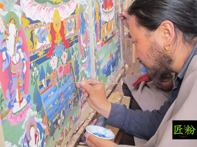 试想,一代代的唐卡画师向活佛问仆,选择良辰吉日,沐浴净身,焚香祷告,一边诵经,一边备料,不问岁月,不谈悲喜,将所有的心气力,将自己对于佛祖的信仰, 倾注到那一支画笔中,那一抹色彩里。那不仅仅是画,而是一个人在修心的过程。