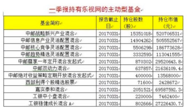 尽管一季报显示,截至3月31日,仍有39只基金合计持有高达6838.24万股乐视网,按停牌前30.68元收盘价计算,合计市值近21亿元。不过持有乐视网股票的基金名单中,主动型基金仅有11只,更大部分为指数或者ETF等被动型产品。