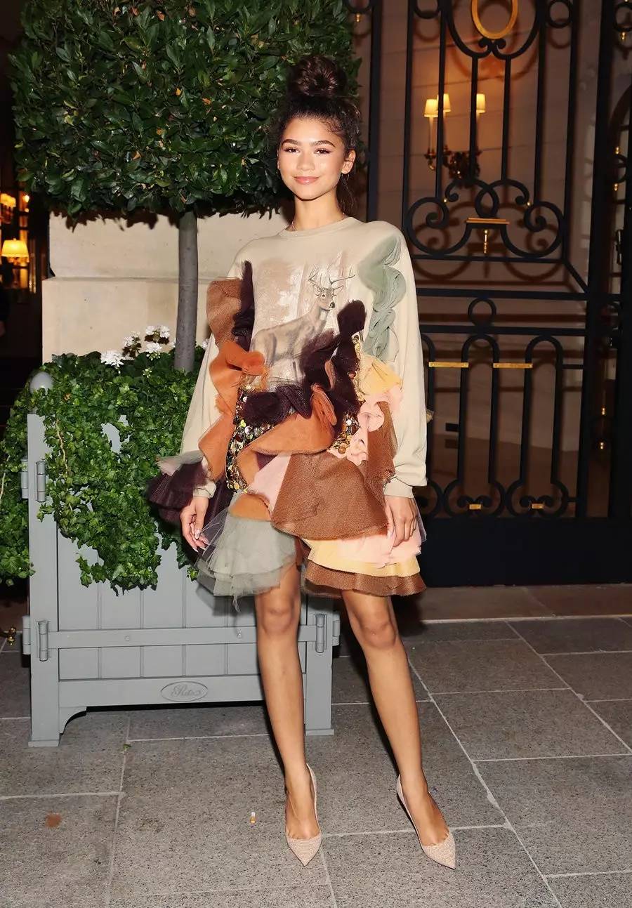 另外一套广受好评的穿搭是Zendaya演绎的Victor &Rolf半休闲连衣短裙配Christian Louboutin的经典尖头高跟鞋。而这样的独特创新搭配,也只有Zendaya得以将其演绎的如此经典。