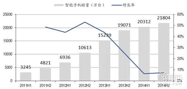 *2011年到2014年中国智能手机销量增长情况