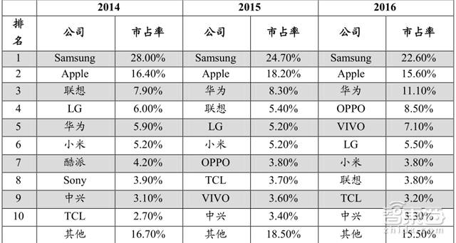 *全球智能手机前10大厂商