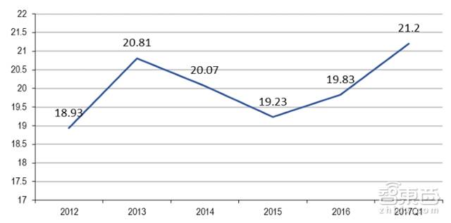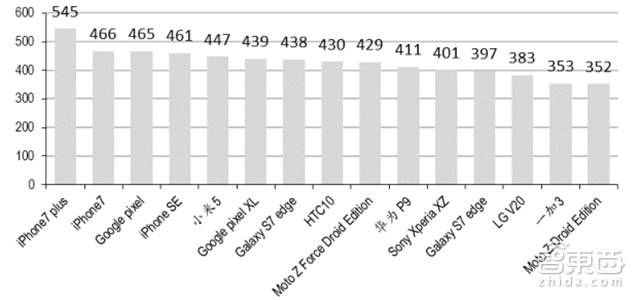 尼尔森的数据显示,2016上半年,中高端智能手机的整体份额已达到47.59%,同比增加近4个百分点;而中低端智能手机的整体份额同比下跌1个百分点,在1000元以下机型整体份额跌幅更是达到3个百分点。同样,第一手机界研究院2017年4月的数据显示,中国市场排名销量前20位的手机机型明显呈现高单机价值量的特点。