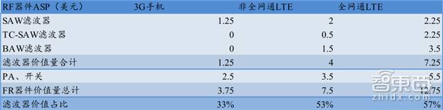 *滤波器在智能手机的射频前端价值量占比越大