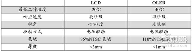 *LCD与OLED功能参数的对比