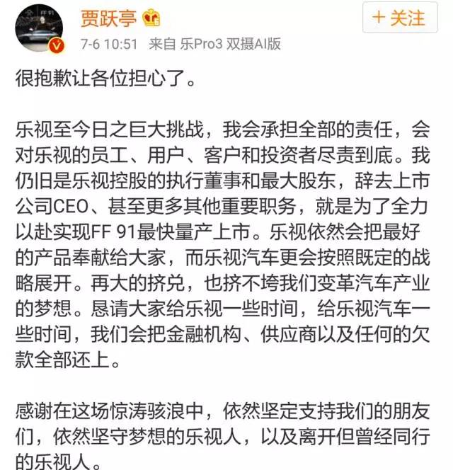 贾跃亭:All in 造车