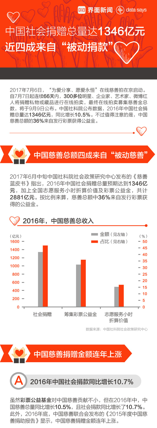 【图解】中国社会捐赠总量达1346亿元 近四成来自“被动捐款”