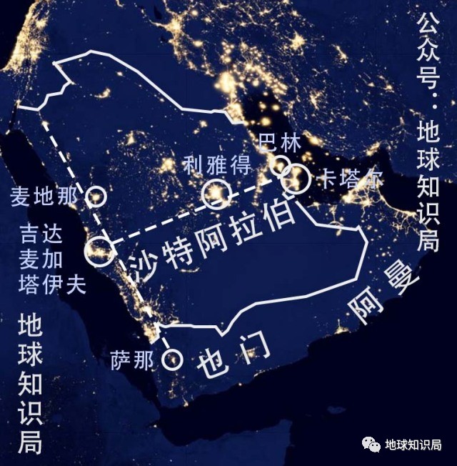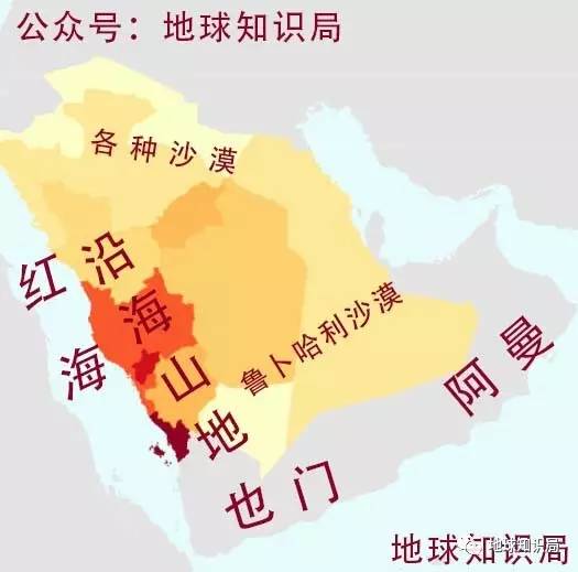 沙特占据了阿拉伯半岛的大部分