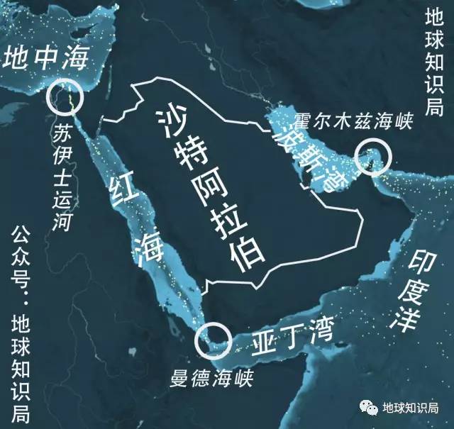 尽管沙特兼备红海和波斯湾的出海口,但面向地中海和印度洋的出海口却在邻国手里。狭窄的红海和波斯湾只要被从两头扼住,沙特便丧失了制海权。