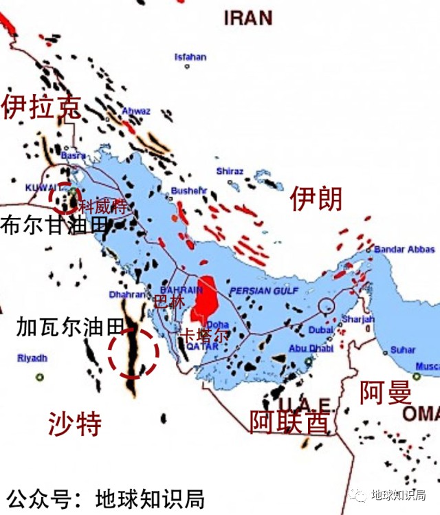 但这个极为棘手的地区却隐藏着沙特最仰赖的石油财源。沙特最大,也是世界上最大的陆上油田加瓦尔油田就在此处。这个油田的出产量占到整个波斯湾石油产量的1/3,是沙特之所以土豪的主要后台。沙特其余几个重要油田也都位于波斯湾沿岸。因此维持东部稳定是沙特政府压倒一切的主要任务。