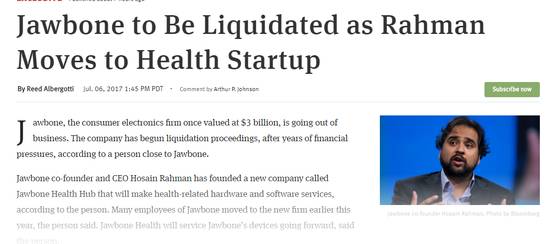 Jawbone遭破产清算,昔日智能手环之王成炮灰。