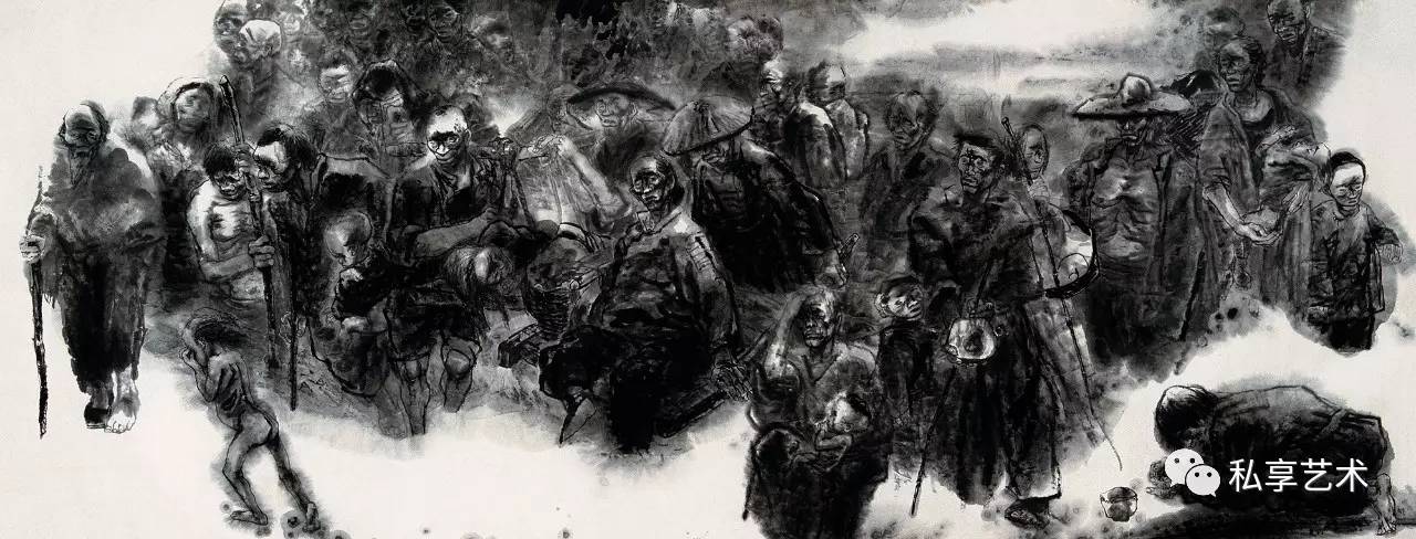 面对杜觉民的水墨画,观众感受到的震撼力,甚至是压迫感和窒息感,虽然来自主题与思想的力量,最终是通过强烈的视觉张力传达的。画家宣称:“笔墨本身是不值得研究的,它只是一种技术,是承载画家思想、观念和情感的媒介,最好的笔墨是让人看不到笔墨!感觉你只能这样画才能表达这样的境界”。不过,作品的内容和境界可以是公共资源,艺术门类的特色则在于表达的方式。思想载体的形状和品质,决定了思想传达的准确与深刻程度,吧这个载体发展成熟并运用纯熟,正是艺术家的职业尊严之所在。