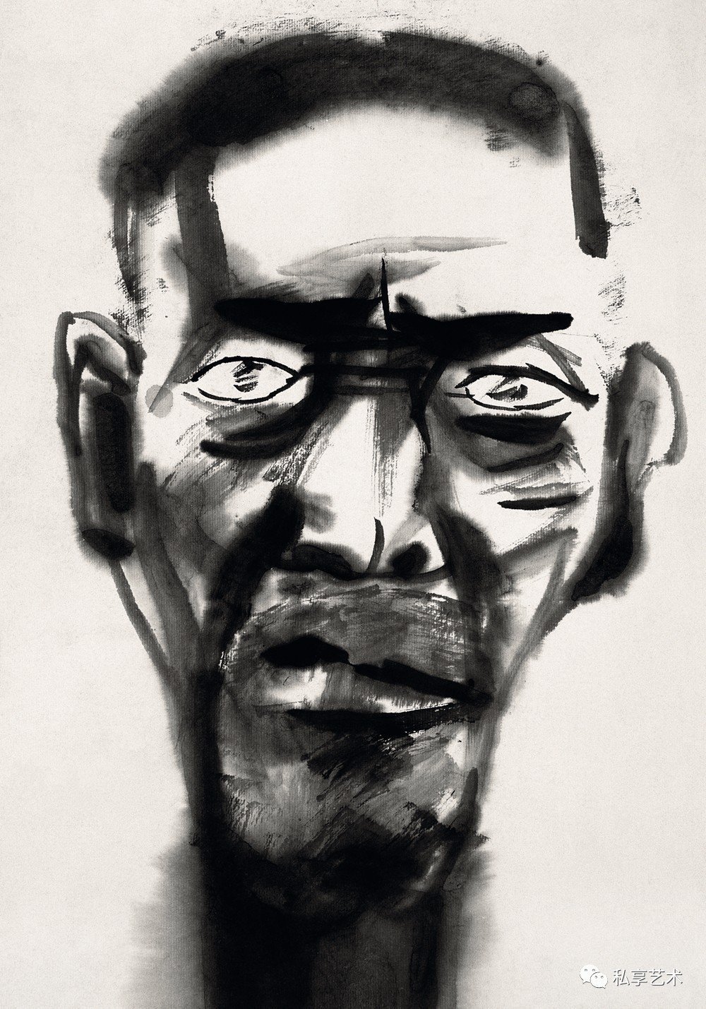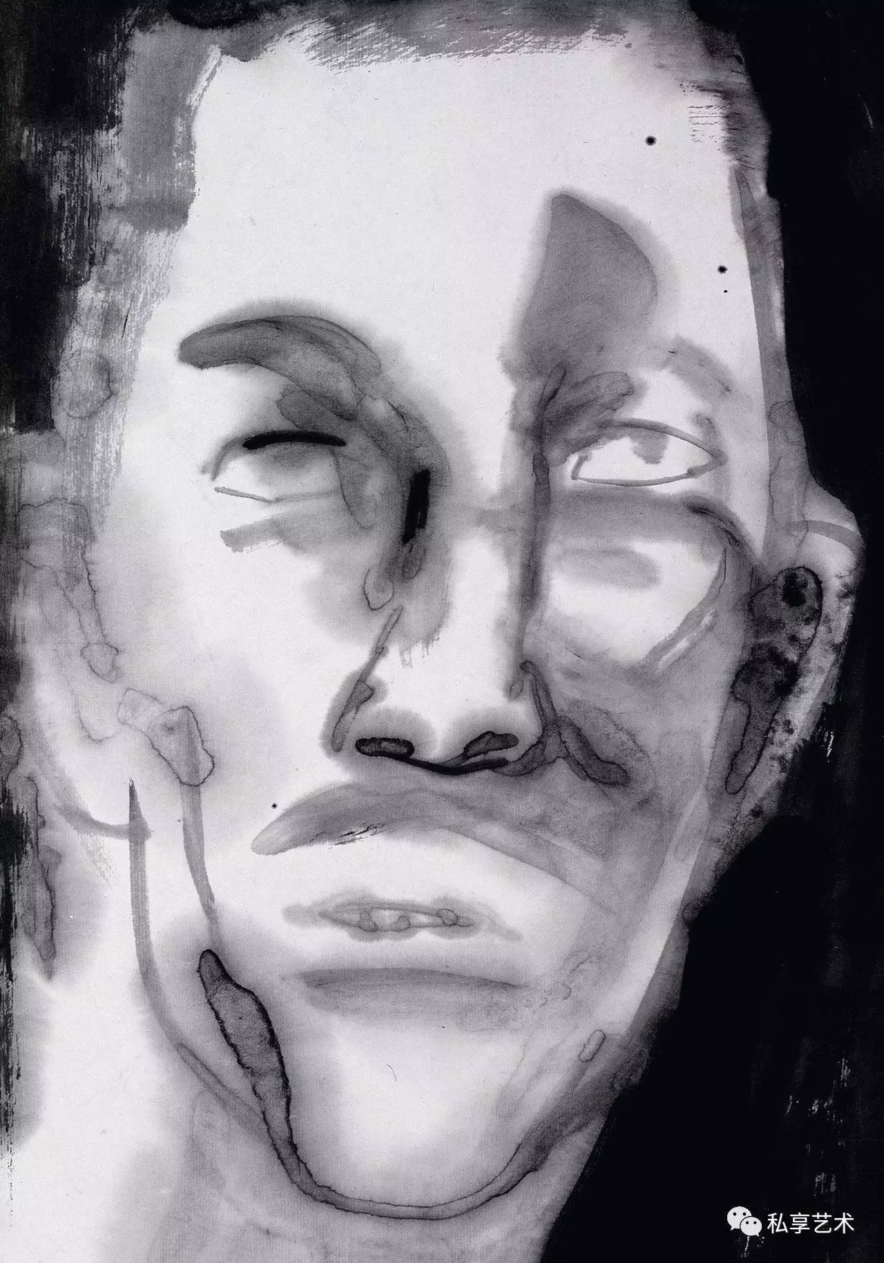 他的大写意形式特色有两方面:一是视觉上的简化与设计感,二是墨法技术的极致化。前者是寓丰富于简化之中,后者是寓简化于丰富之中。