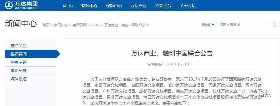 为了充分发挥双方各自产业优势,经友好协商,双方于2017年7月10日签订了西双版纳万达文旅项目、南昌万达文旅项目、合肥万达文旅项目、哈尔滨万达文旅项目、无锡万达文旅项目、青岛万达文旅项目、广州万达文旅项目、成都万达文旅项目、重庆万达文旅项目、桂林万达文旅项目、济南万达文旅项目、昆明万达文旅项目、海口万达文旅项目等十三个文化旅游城项目股权转让及北京万达嘉华、武汉万达瑞华等七十六个酒店转让协议。主要内容如下: