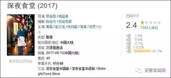 《深夜食堂》几成“广告食堂”,剧集连带着黄磊口碑集体扑街,黄老师的“骗稿风波”才刚刚尘埃落定,对其形象又重重添了笔墨墨黑的黑历史,对于电影电视剧与品牌的广告软植来说,成了一个典型的反面案例。