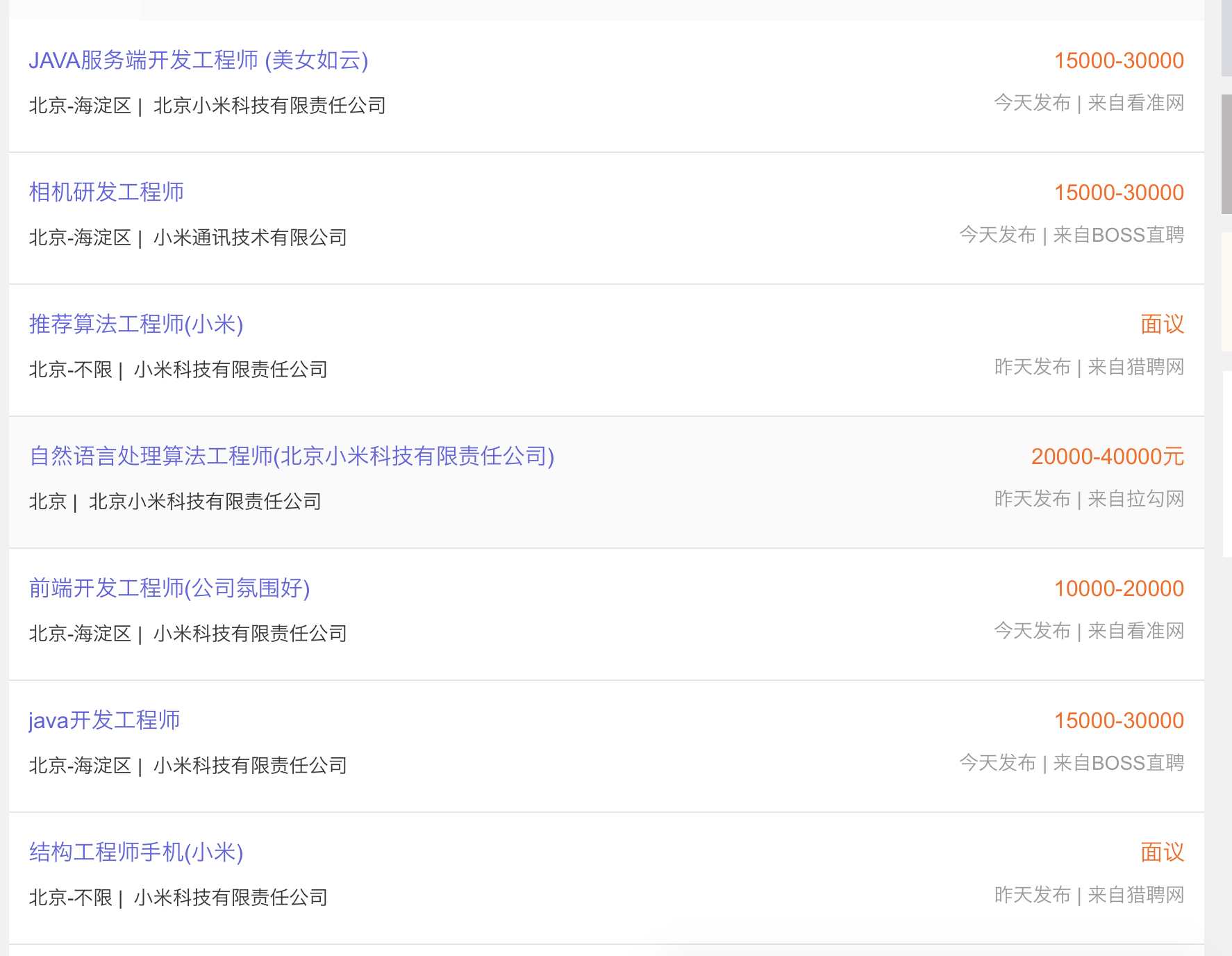 小米其实一直在各家招聘网站上对外招聘各类工程师,并且都要求一定的工作经验,待遇看起来似乎也不低。而这次对外大规模的公开招聘,其实也能体现出小米有意在做技术储备,为之后的新款手机能有足够的竞争力招揽人才。