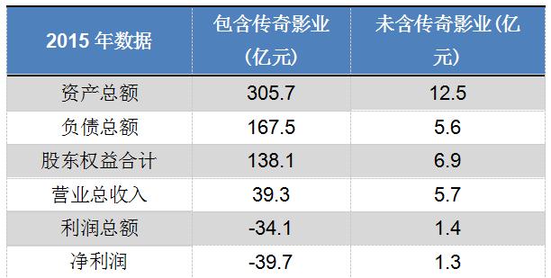 去年的重组预案显示,传奇影业是造成万达影视利润亏损的主要原因。2015年相关数据显示,未包含传奇影业的万达影视,总资产为12.4亿元,总收入为5.69亿元;但是一旦包含了传奇影业,总资产规模达到305亿元,总收入也达到了39.26亿元。但是唯一的缺点就是净利润的亏损。未包含传奇影业的净利润为1.3亿元,包含传奇影业的净利润为亏损3.97亿元。