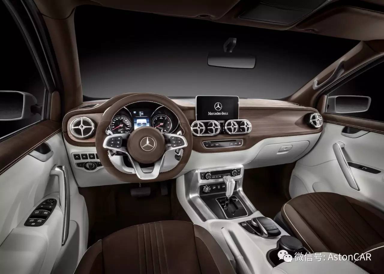 从去年公布的概念图可以看到,奔驰X-class车内所能触碰到的位置,全都使用了真皮、实木内饰,延续奔驰一贯的内饰设计风格,在空调出风口、仪表盘等位置都具有目前奔驰在轿车、SUV上的影子。这在整个皮卡市场里算是一股彻底差异化的豪华体验。