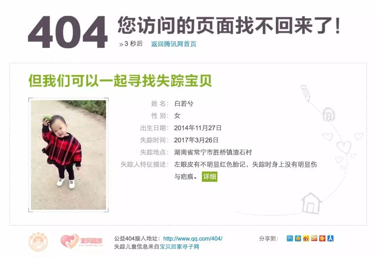 1)腾讯发起的404公益活动,在出现404错误的时候展示失踪儿童信息: