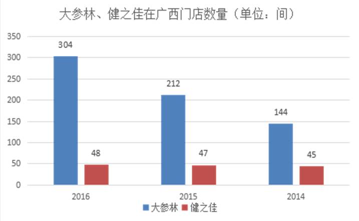 因为毗邻广东,广西备受大参林的重视,大参林连锁药店有限公司董事长柯云峰曾说过:“广东的布点已深入各个地级市、县甚至部分乡镇,广西会是第二个发展的重点市场。”