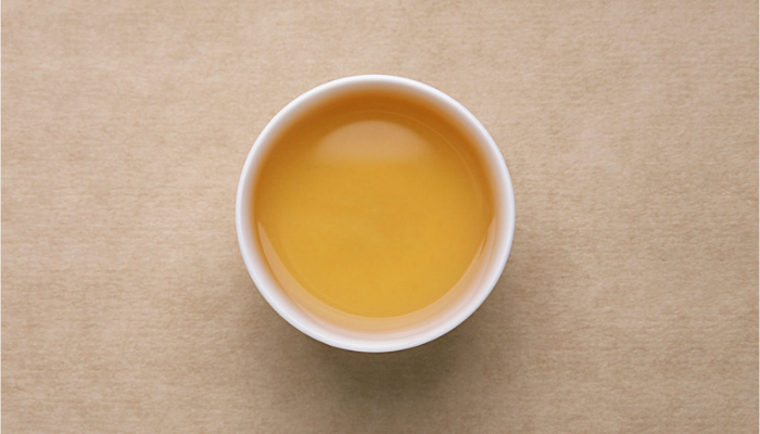 汤色橙黄,如从细嫩的枝叶、花朵表面浸出的甘露,鲜醇香润,带着浓郁的清香和花蜜香,饮后回甘生津明显,口齿留香持久,有清凉感。