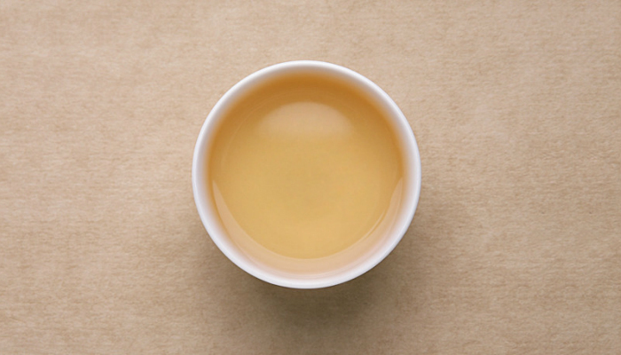 已入尾水,茶汤浅黄色,滋味甜柔,口腔留有糯香。