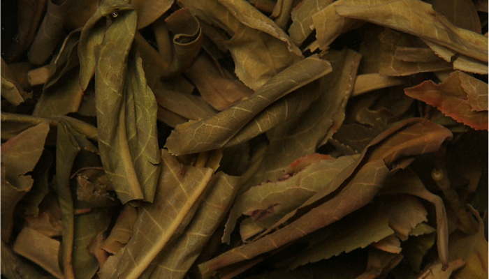 杯底色泽深黄绿,泛褐,叶张肥大,叶质柔嫩有弹性。