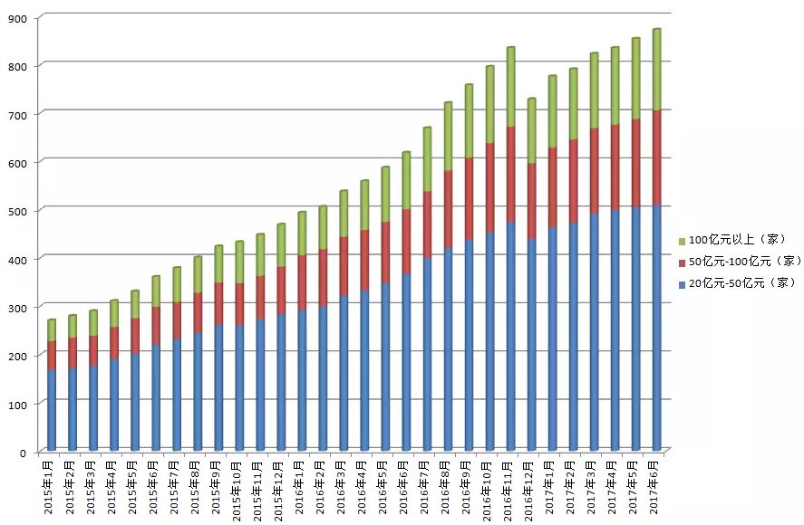 数据显示,截至6月底,按正在运行的私募基金产品实缴规模划分,管理规模在20-50亿元的私募基金管理人有510家,规模在50-100亿元的有196家,规模大于100亿元的有167家。相比去年底分别增加了71家、39家、34家。基金君发现,百亿私募的数量已经创历史新高。