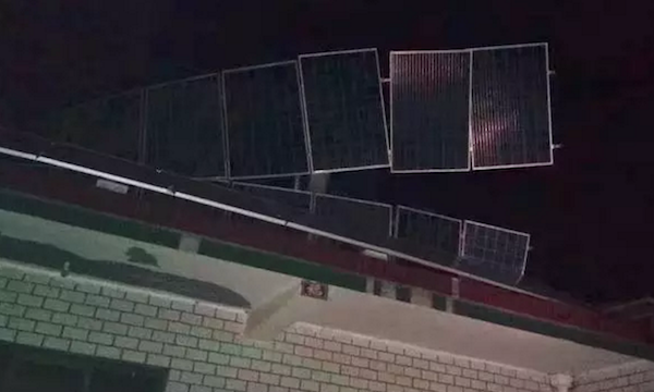 先说最近光伏界发生的一件刷屏事件,7月9日傍晚,河北省衡水遭遇强风暴雨天气,不幸的是许多扶贫用户的电站在这场暴风雨下,连根拔起,被从屋顶掀翻,散落一地,问题出在哪里呢?是天灾还是人为呢?