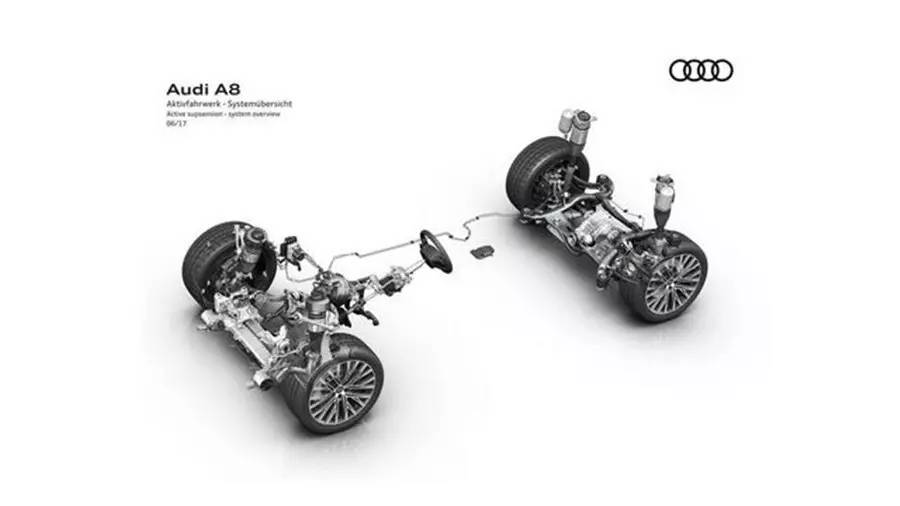 另外全新的主动式悬架系统也是这次A8的亮点,该系统给通过车轮上的48V电动机,在侦测到不平整路面时,该系统通过齿轮、内部钛制扭杆和耦合杆在悬挂上施加1100N·m的扭力,使车辆在路过颠簸、过弯侧倾和刹车时的车身反馈更为稳定、舒适。特别的是,为了提高安全性,当新A8的传感器检测到自身侧面即将被撞击时,被撞一侧的主动式悬架还能迅速将车身撑起一定高度,让撞击力更多地传递到车身底盘处,以降低撞击力对车门和B柱的损坏,从而降低车内乘员可能会受到的伤害。