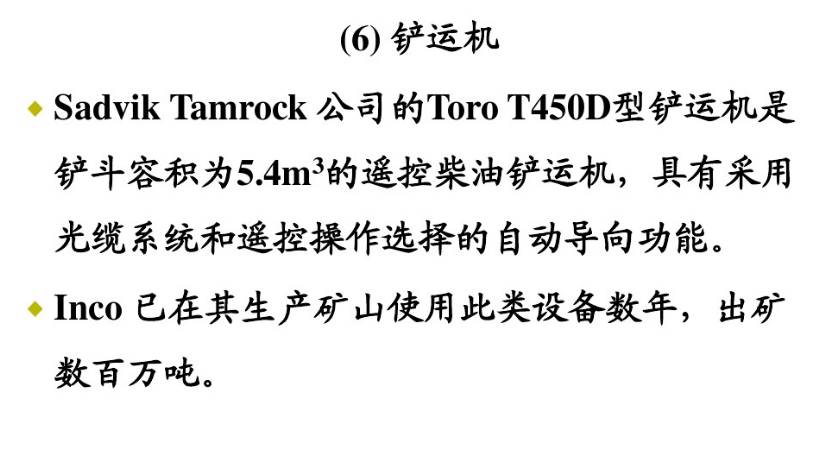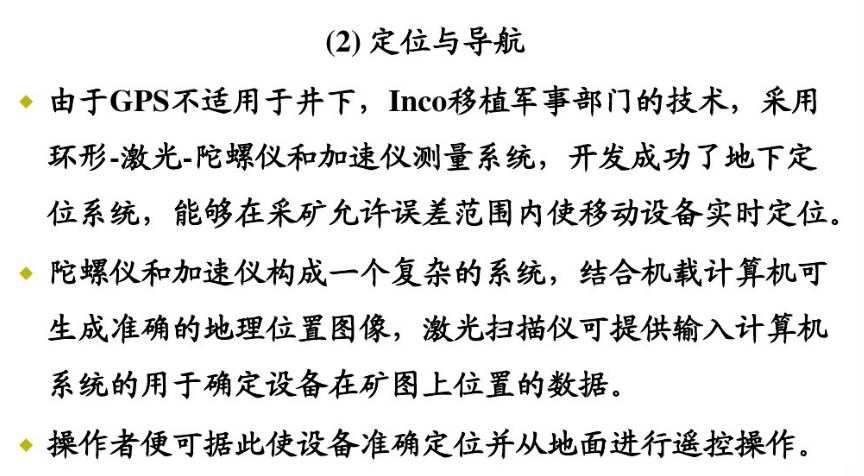 加拿大国际镍公司(Inco)从20世纪80年代初开始研究遥控采矿技术,目标是实现整个采矿过程的遥控操作。