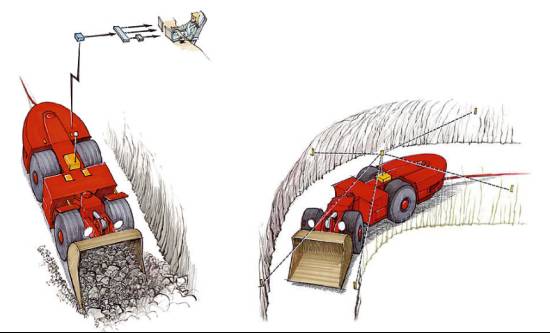 Inco公司遥控采矿的核心部件是自主开发的一个能在地下获取定位数据的名叫HORTA的装置。将该装置安装在地下观测车上,当观测车在地下或矿体内部巷道中漫游时,HORTA就会利用其激光陀螺仪和激光扫描仪在水平和垂直面上扫描矿山巷道的断面,进而产生巷道的三维结构图。