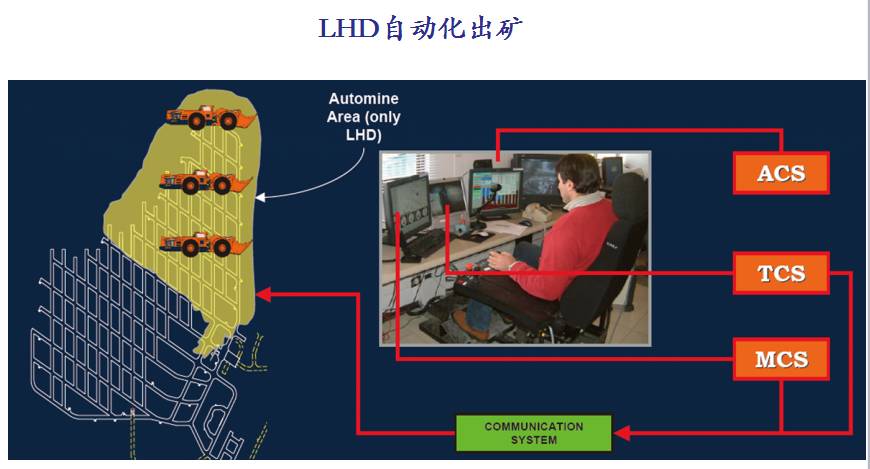 智利特尼恩特(EI Teniente)铜矿采用的是山德维克的AutoMine系统,控制室设在地表,距生产区约15KM。控制室两人工作,一人负责操作地下铲运机,随时可将铲运机在线转至遥控等待、自动或遥控操作状态,而无需停车;另一人负责生产计划和协调工作。