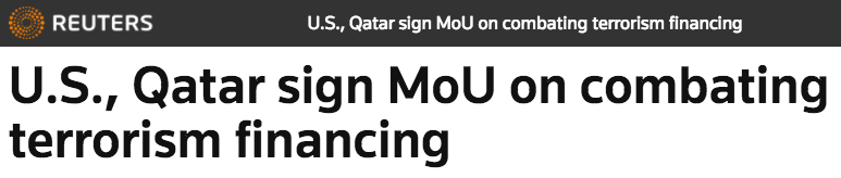 【美国和卡塔尔签订协议共同打击恐怖主义】周二,美国和卡塔尔签订了一项旨在打击为恐怖主义提供资金的协议。美国国务卿蒂勒森正在对卡塔尔首都多哈进行访问,试图结束沙特等阿拉伯国家和卡塔尔之间持续了一个月之久的外交危机。
