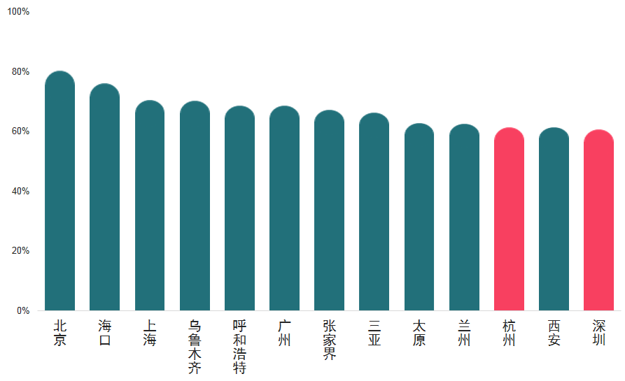 图:全国总共13座城市三产占比超60%,杭州、深圳均在其中