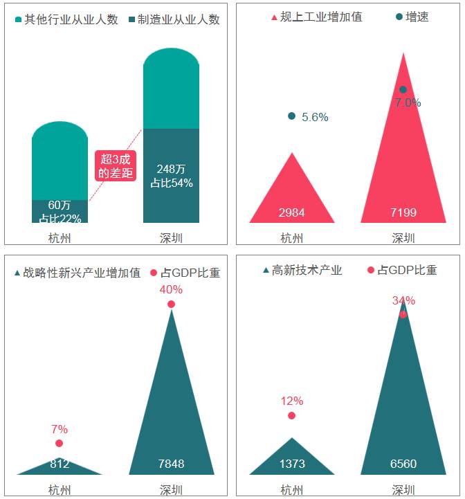 在回答上面的问题之前,我们先来看杭州与深圳的产业构成。