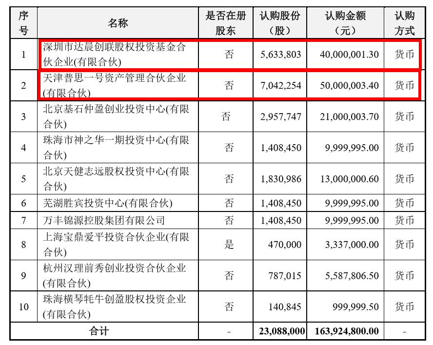 在此轮定增中,普思投资认购了5000万元,达晨认购了4000万元,二者分别以5.92%、4.73%的占股比成为了紫晶存储的第四、五大股东。