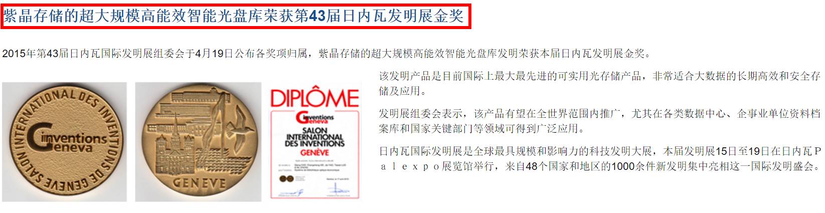 紫晶存储就是其中的代表。其拥有自主知识产权的光存储设备系统技术处于行业领先地位,同时在高端蓝光光盘生产的制备、工艺和材料领域拥有多项专利技术,让其档案级产品在技术指标,特别是超长保存寿命方面走在了世界的前沿。这也意味着,具有自主知识产权的光存储技术就是公司最大的竞争力。